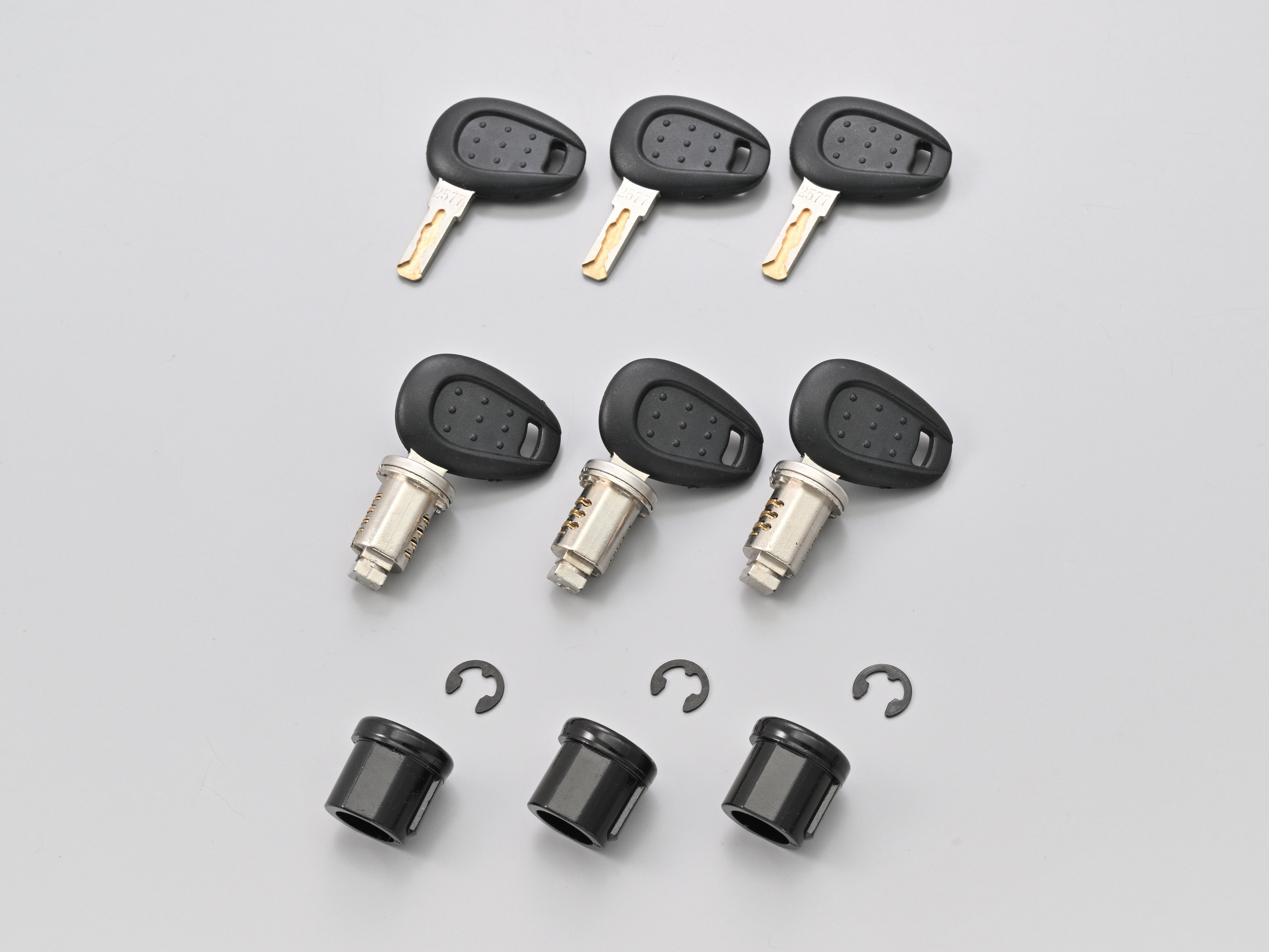 これは、3個または5個のキーとキーシリンダーがセットになっているもので、ケースについているキーシリンダーごと取り替えてしまう品です。